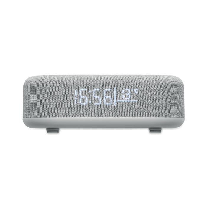 4 in 1 15W draadloze en oplaadbare 5W luidspreker in ABS met Weerstation en Sfeerverlichting. Wekker. Weergave van tijd en temperatuur. Ingebouwde Li-Iin batterij: 1200 mAh. Speeltijd ca. 7 uur