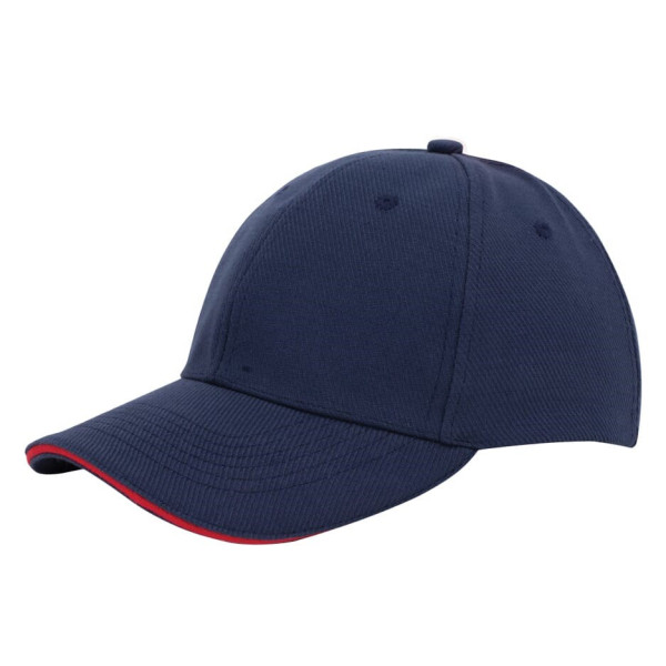 De canvas sandwich cap heeft zes panelen van geborsteld katoen. Tussen de boven- en onderzijde is een andere kleur gesandwiched dan de kleur van de rest van de pet. Gemaakt van canvas-katoen, de meest stevige textielstof die er bestaat. Deze stijlvolle cap heeft een verstevigde voorzijde en is voorzien van een verstelbare, zilveren gespsluiting.