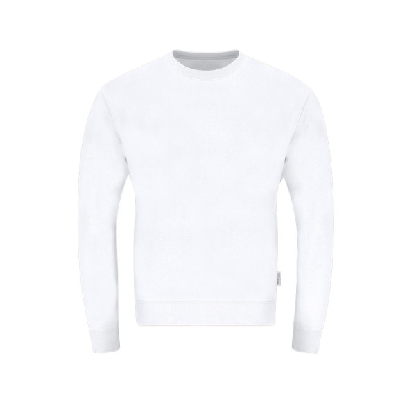Unisex sweater van biologisch katoen en gerecycled polyester, in zachte quilted fleece van 280 g/m². Met elastische ribgebreide kraag, manchetten en tailleband. Kraag, manchetten en tailleband in ribgebreide spandex.