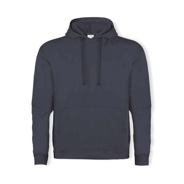 Volwassen unisex sweatshirt met capuchon. Gemaakt in een combinatie van geborsteld organisch katoen RPET polyester 280gsm. Kangoeroezak en effen gebreide gevoerde capuchon met bijpassende gekleurde touwtjes. Kraag, manchetten en tailleband in 2x1 ribbreisel, met gestikte schouders en ecolabel. Verkrijgbaar in een breed scala aan kleuren en in de maten XS, S, M, L, XL, XXL, 3XL.