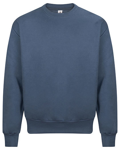 Geregenereerde katoen / Gerecycleerd polyester | 100% katoenen stof | Oversized pasvorm | zwaargewicht | Ronde halsuitsnijding | Geribbelde kraag, manchetten en zoom | Ingezette mouwen | Geborstelde fleece aan de binnenzijde | Afscheurbaar etiket
