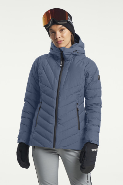 Dit lichte donsjack voor dames is gemaakt met RDS-gecertificeerd dons om je warm en comfortabel te houden. Hij heeft een vaste capuchon die horizontaal kan worden versteld, en samen met de hoge kraag houdt hij de koude wind uit je nek. Het heeft twee voorzakken met ritsen en ook ventilatie met rits onder de armen. De elastische manchetten en verstelbare taille zorgen voor een perfecte pasvorm zonder koude lucht binnen te laten. Met deze stijlvolle en zeer functionele donsjas zie je er zowel in de bergen als bij de après-ski op je best uit. Combineer deze jas met de Tenson skibroek om de look compleet te maken.