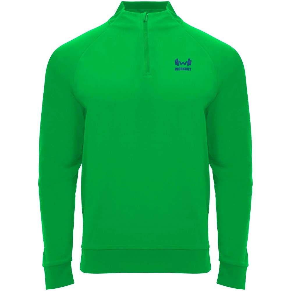 Technische stof. Raglanmouwen. Fleece aan de binnenkant. Kraag met halve rits en bijpassende verstevigde bedekte naden. 1x1 rib in kraag, manchetten en zoom. Verwijderbaar label. Sweatshirt passend bij Neapolis broek.