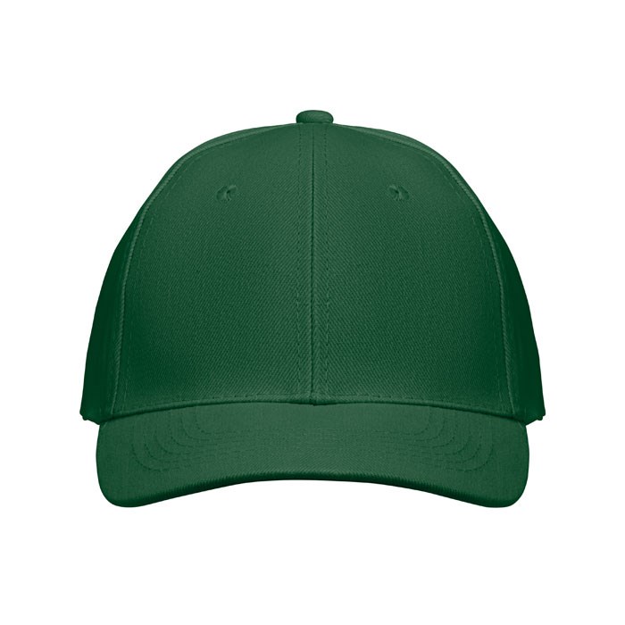 Baseballpet met 6 panelen van geborsteld katoen 260gr/m² met zilverkleurige stalen gesp en 6 geborduurde oogjes in bijpassende kleur. Maat 7 1/4.
