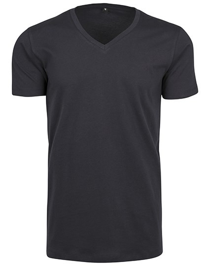 Lichte single jersey | Neutraal maatlabel zonder merknaam, nekprint mogelijk | Ingezette mouw | Dubbele naden aan de zoom | Nekband | V-hals met ribboord | Lang en slank getailleerd