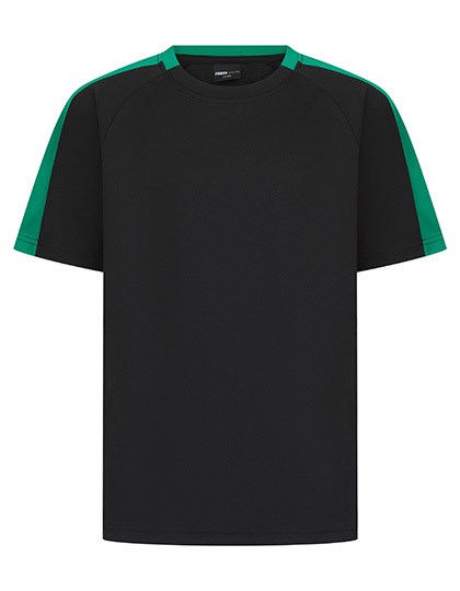 Single jersey | Afvoerende afwerking op stof | 2-delige contrasterende kraag | Ronde halsuitsnijding | Raglan mouw | Contrasterende zijpanelen uit dezelfde stof op de mouw | Afscheurbaar label