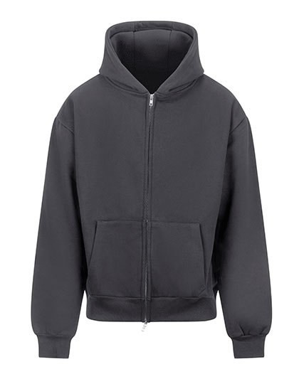 Ringgesponnen katoen | 10% gerecycleerd polyester | Oversized pasvorm | zwaargewicht | Dubbele stoffen kap met drie panelen | YKK-ritssluiting met dubbele uiteinden | Geen trekkoorden | Geribbelde manchetten en zoom | Geborstelde fleece aan de binnenzijde | Afscheurbaar etiket | 100% katoenen stof