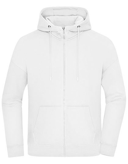 Hoogwaardige sweatstof met opgeruwde binnenkant | Mix van gekamd ringgesponnen biologisch katoen en gerecycleerd polyester | Met ritssluiting over de volledige lengte en capuchon | Tweelaagse capuchon met trekkoord | Kangeroezak | Tailleband en manchetten met elastaan