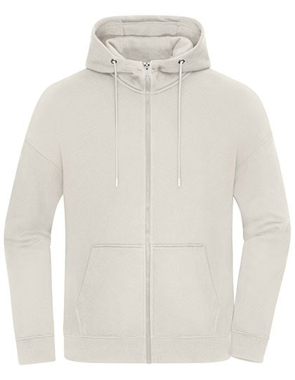 Hoogwaardige sweatstof met opgeruwde binnenkant | Mix van gekamd ringgesponnen biologisch katoen en gerecycleerd polyester | Met ritssluiting over de volledige lengte en capuchon | Tweelaagse capuchon met trekkoord | Kangeroezak | Tailleband en manchetten met elastaan