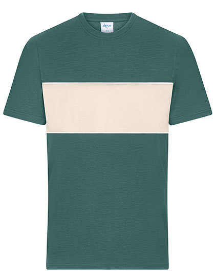 Single jersey van gekamd ringgesponnen biologisch katoen | Ronde halsuitsnijding | Paneel met blok in contrasterende kleur en bies aan de voorkant | Manchetten met elastaan