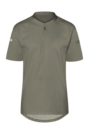 Voorkant: keper; achterkant: jersey piqué, ademend en vochtafvoerend | Modern werkhemd met korte...meer