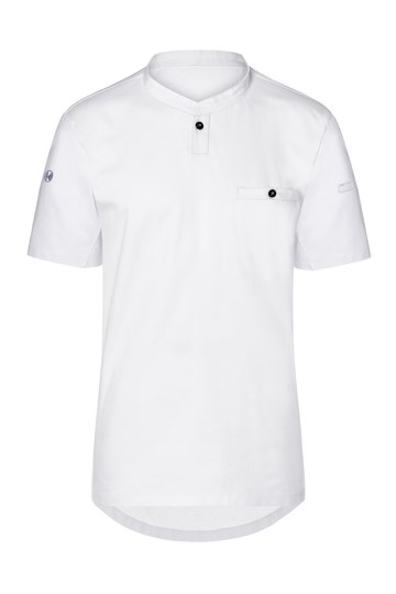 Voorkant: keper; achterkant: jersey piqué, ademend en vochtafvoerend | Modern werkhemd met korte...meer