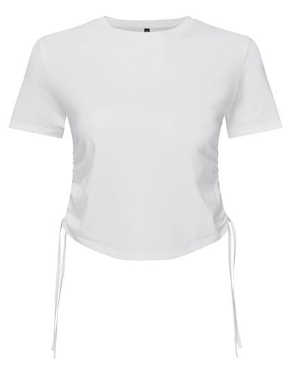 Kort T-shirt | Korte mouwen | Gerimpelde details aan de zijkanten | Striksluitingen | Ronde hals