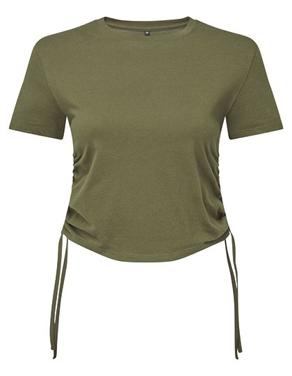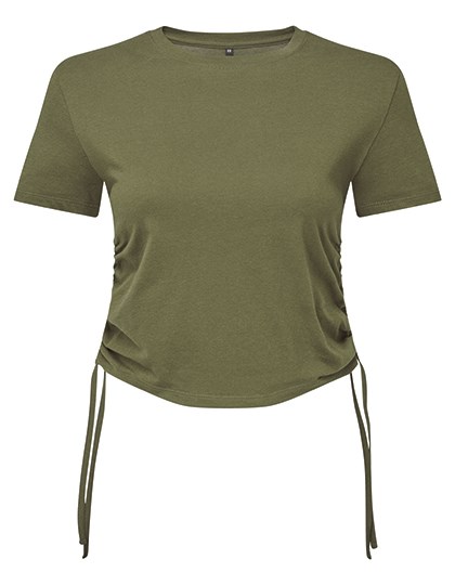 Kort T-shirt | Korte mouwen | Gerimpelde details aan de zijkanten | Striksluitingen | Ronde hals