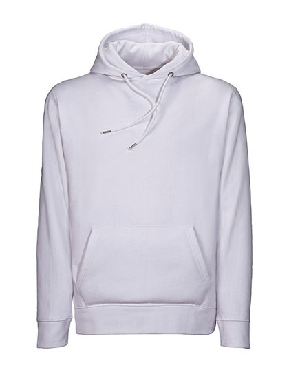 100% geregenereerde stof | Gerecycleerd katoen en polyester | Uniseks | Binnenkant uit fleece | Dubbellaagse kap | Metalen oogjes | Trekkoorden met metalen uiteinden | Grote buidelzak | Geribde manchetten en onderboord | Constructie van zijnaden