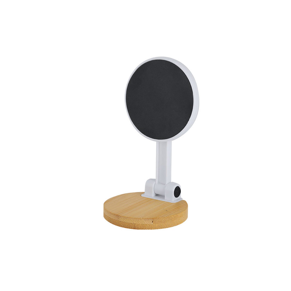 Vouwbare steun voor smartphones. Met magnetische bevestiging, MagSafe en een verstelbare positie voor meer comfort. Inclusief een metalen sticky ring.Materialen zoals bamboe bevorderen het gebruik van natuurlijke grondstoffen en verminderen de uitstoot van verontreinigende stoffen. Het komt van een snelgroeiende en regenererende plant, wat het een uitstekende aanvulling maakt op het gebruik van traditionele houtsoorten.