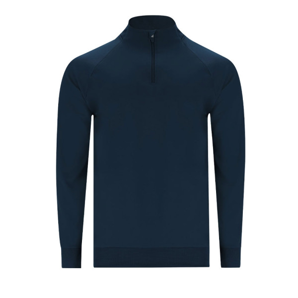 Sweater met een technische stof en een geborstelde binnenkant die warmte en zachtheid biedt. Met raglanmouwen en een hals met een halve rits en versterkte naden in dezelfde kleur. Het achterste deel van de hals, de manchetten en de onderkant zijn gemaakt van 1x1 rib voor een comfortabele pasvorm. Inclusief zijnaadsteken.