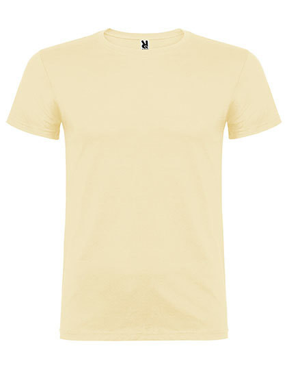 Single jersey | T-shirt met korte mouwen en dubbele ronde hals met elastaan | Gemaakt van buisvormige stof | Met versterkte verborgen halsnaad | Tear-out label