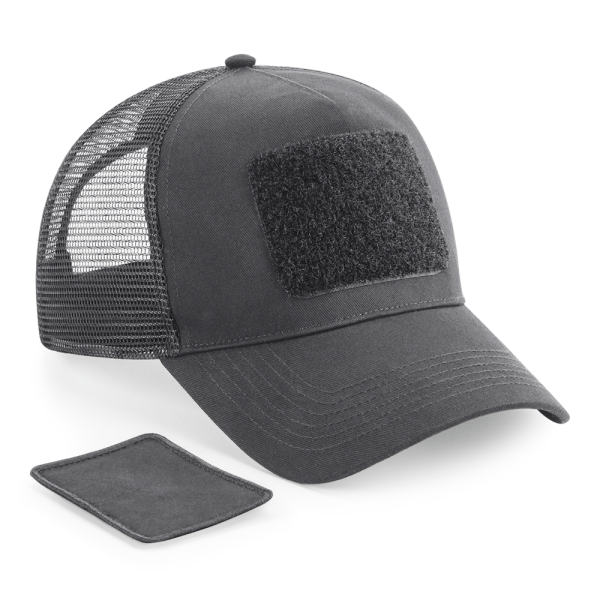 100% katoen voor voorpaneel en zonneklep. Achterpanelen in mesh van 100% polyester. Verwisselbare Rip-Strip™ patch voor decoratie. 5 panelen. Voorgevormde zonneklep. Regelbaar met plastic retrotong. Snapback. Afneembaar TearAway-etiket, makkelijk opnieuw te labelen.