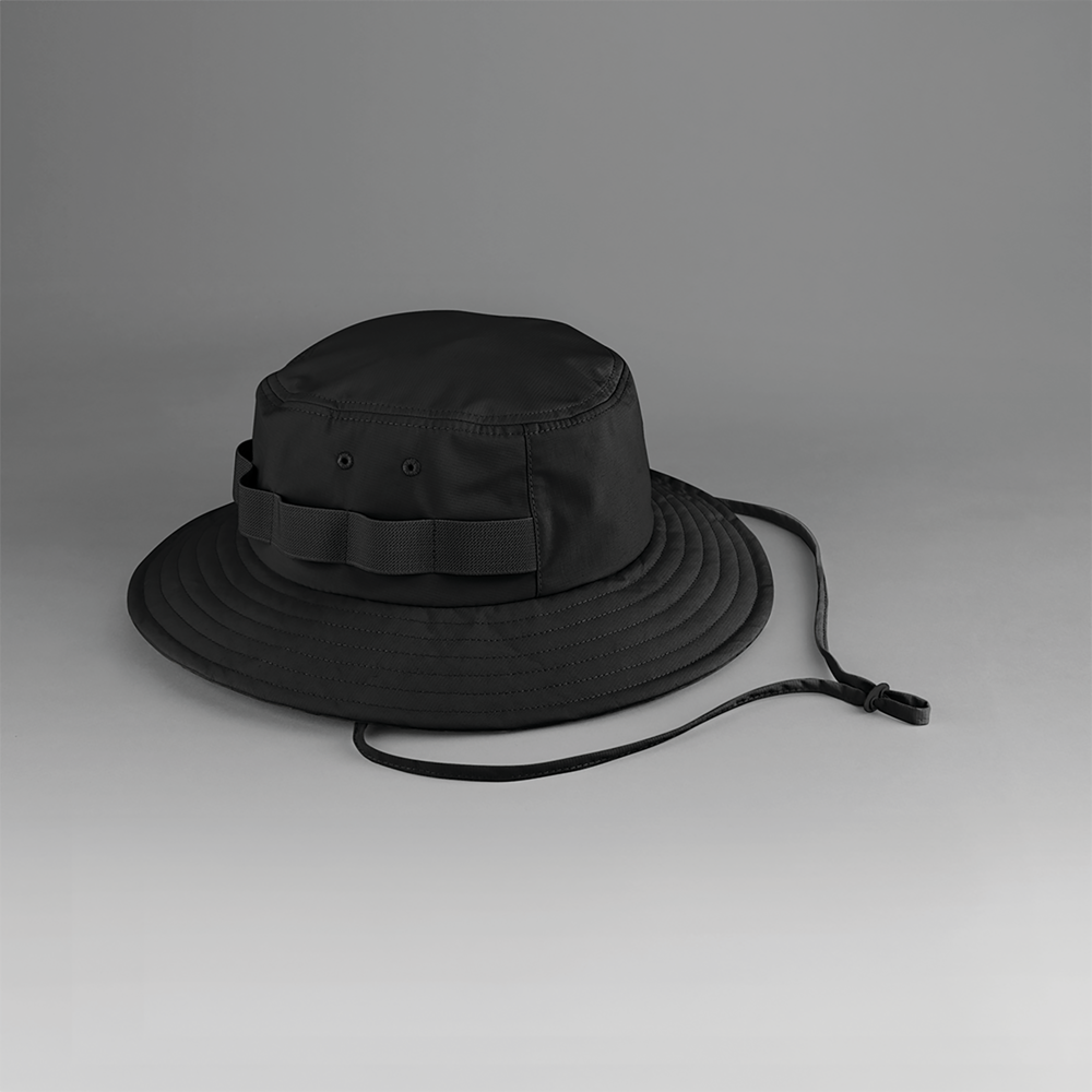 100% gerecycled nylon. Zweetband van Coolmax®. Bescherming tegen zonnestralen. Afneembaar kinbandje met verstelbare koordstopper.