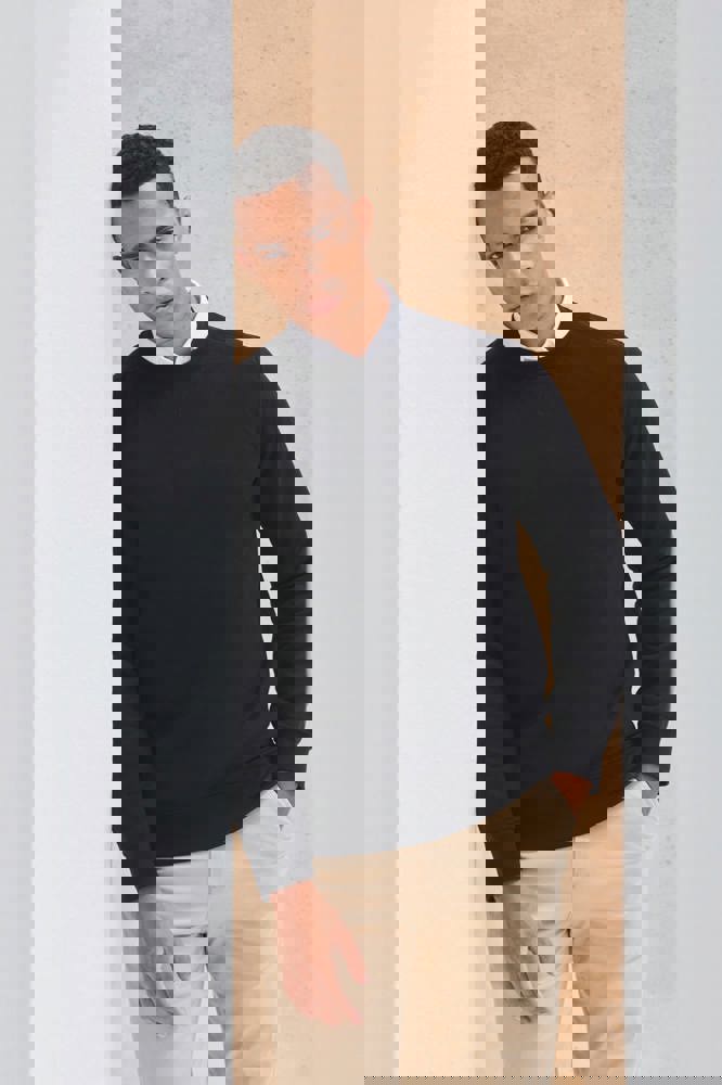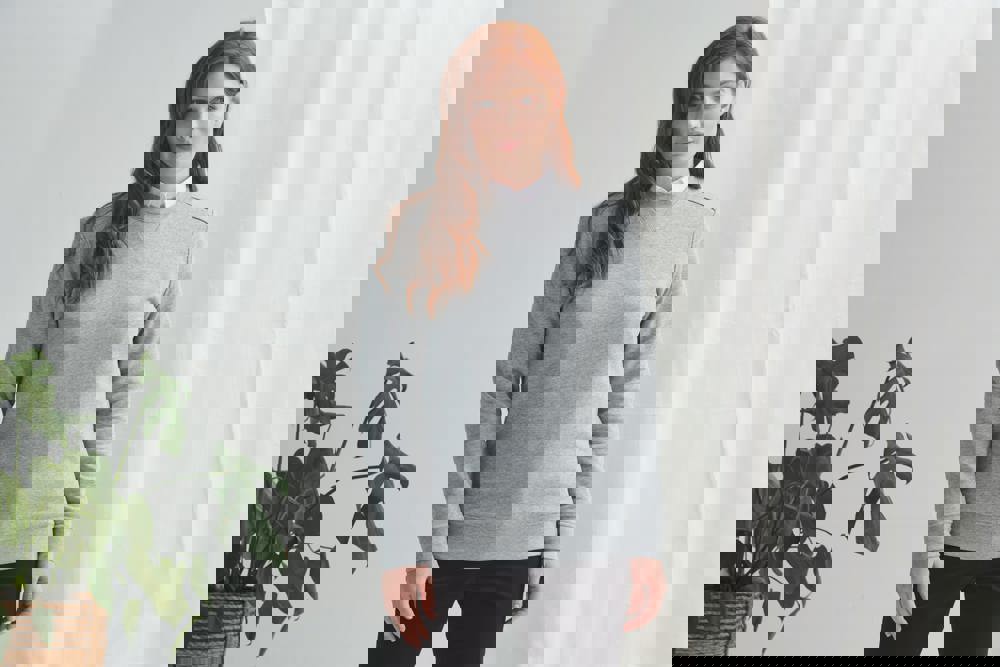 60% geregenereerd katoen / 40% gerecycleerd polyester. Geborsteld fleece op de achterkant. Mouwuiteinden met geribde boord. Contrasterende strook op de achterkant van de halsopening. V-vormig, geribd inzetsel in het midden. Regular snit. De kleur kan variëren omdat er gerecycleerde materialen in werden verwerkt.