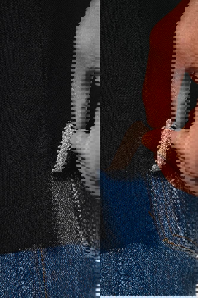 100 % katoen (behalve kleur Oxford Grey: 90 % katoen en 10 % viscose). Rechte snit. Gekamd katoen. Piquétricot. Kraag met 3 toon-op-toon knopen. Schouderversteviging in silicone voor een betere pasvorm. Contrasterende nektape aan halsopening en zijsplitten in de hoofdstof. Afwerking ribboord 1x1 met contrasterende biezen aan kraag en mouwuiteinden. Afwerkingen met dubbel stiksel onderaan. Afscheurbaar merklabel en maatlabel in de kraag voor eenvoudige personalisatie.