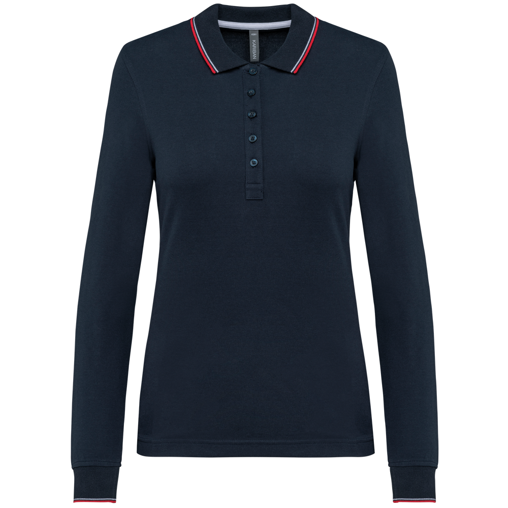 K281 - Dames polo van piquétricot met lange mouwen
