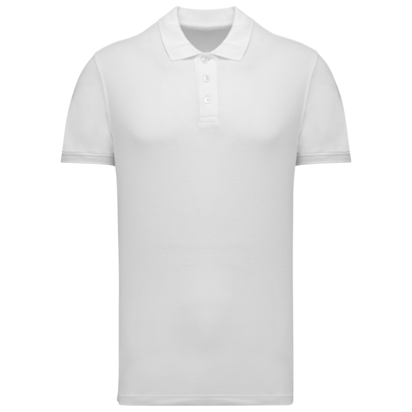 100% katoen. Gekamd katoen. Piquétricot. Rechte snit. Zijnaden. Gemaakt in Portugal. 1x1 ribboord aan hals en mouwuiteinden. Knooplijst met 3 contrasterende parelmoeren knopen op alle kleuren. Bijpassende nektape in de hoofdstof in de kraag. Verstevigde schouders. Zijsplitten. Boord onderaan afgewerkt met dubbel stiksel. Geen merklabel, enkel een afscheurbaar maatlabel voor eenvoudige personalisatie.