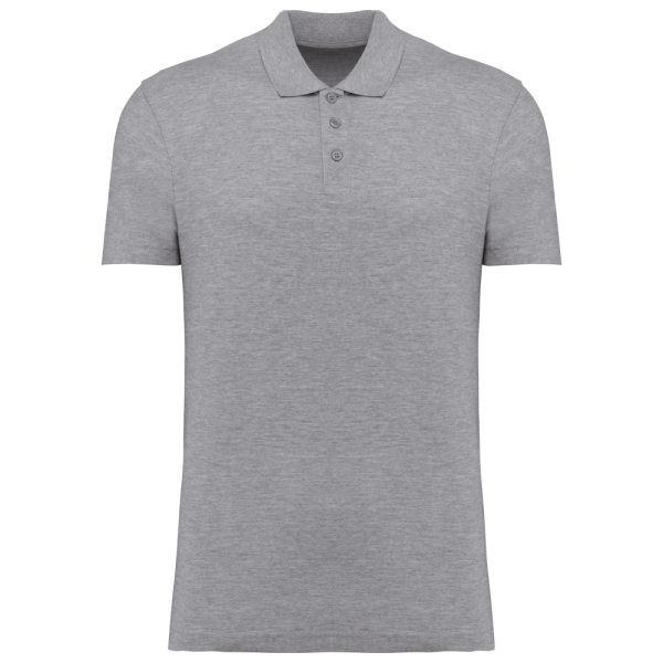 100% katoen. Oxford Grey kleurenpalet: 90% katoen / 10% viscose. Gekaard katoen. Piquétricot. Rechte snit. Zijnaden. 1x1 ribboord aan de hals. Knooplijst met 3 bijpassende knopen. Dubbel stiksel op mouwuiteinden en boord onderaan. Zijsplitten. Bijpassende nektape in de hoofdstof. Geen merklabel, enkel een afscheurbaar maatlabel voor eenvoudige personalisatie.