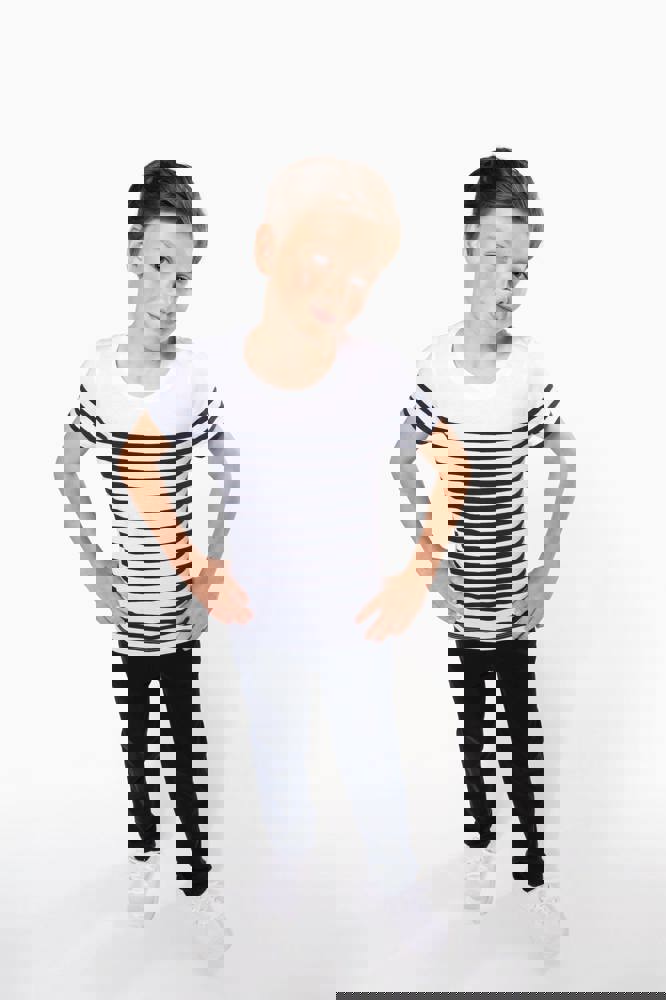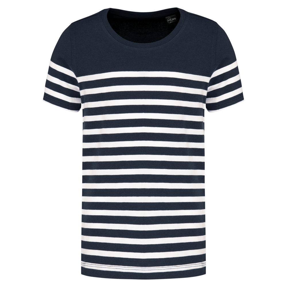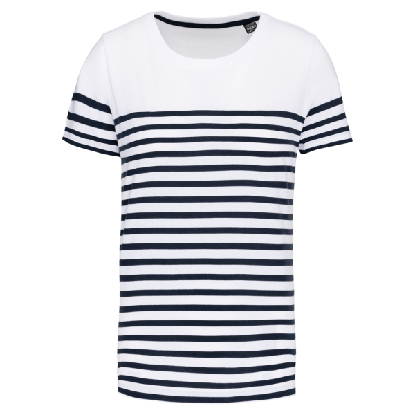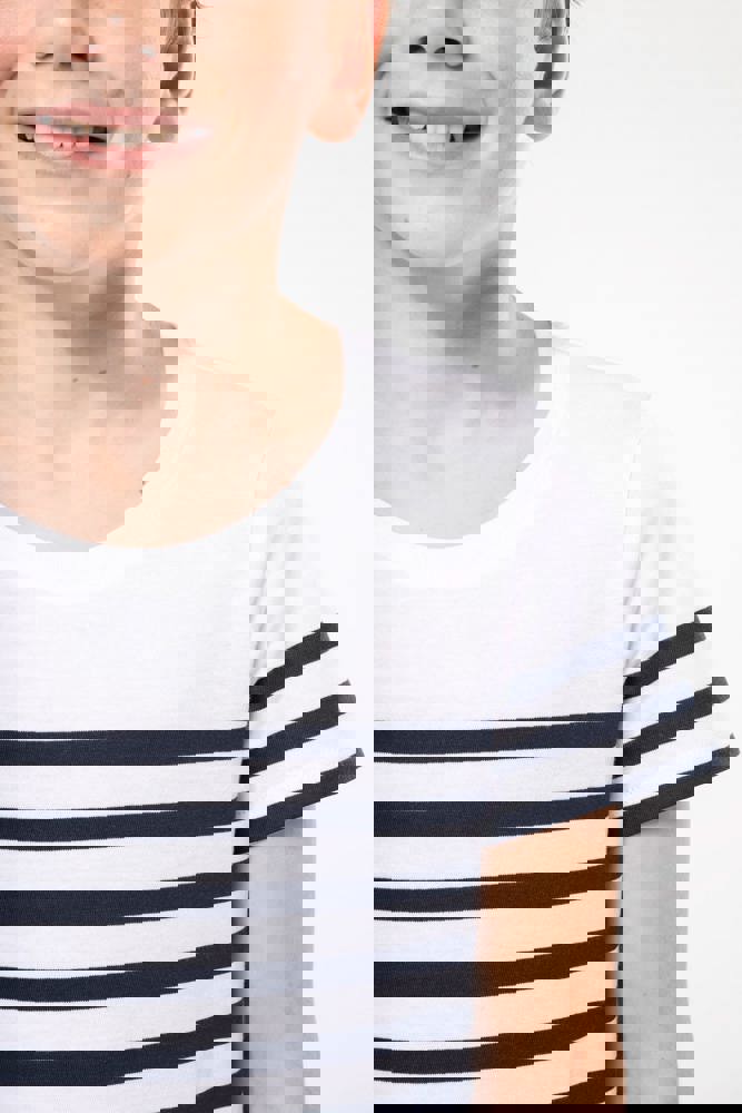 100% katoen. Dit T-shirt werd gemaakt van 100% biologisch gekamd katoen. Rechte snit. Enzymgewassen. Ronde halsopening met 1x1 ribboord. Gebreide strepen. Nektape. Dubbel stiksel aan mouwuiteinden en onderkant. Geen merklabel, voor eenvoudige personalisatie.