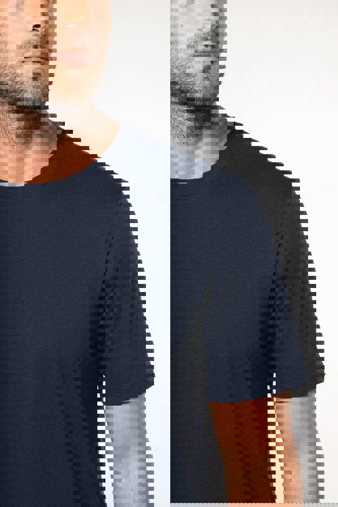 100% katoen. Gekamd katoen. Jersey. Rechte snit. Cut-and-sew-techniek. Ronde hals met toon-op-toon nektape. Versteviging van de schoudernaad met een silicone bandje. De mouwuiteinden en onderkant zijn afgewerkt met een zoom met dubbel stiksel. Geen merklabel, maar enkel een Tear Away-maatlabel voor eenvoudige personalisatie. Gemaakt in Portugal.