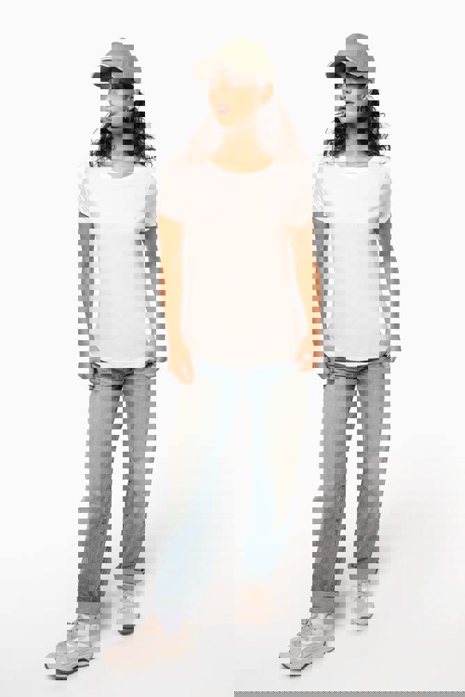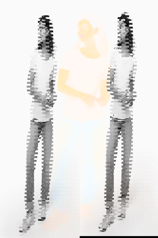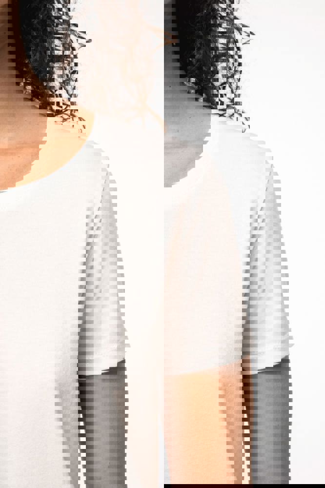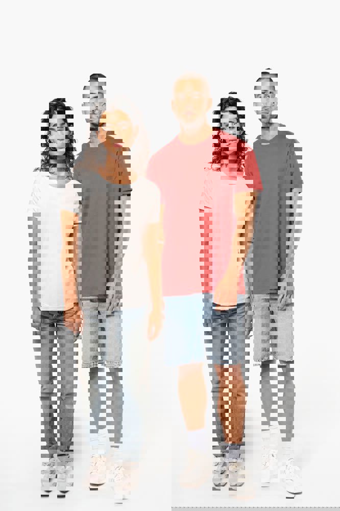 100% katoen. Oxford Grey kleurenpalet: 90% katoen / 10% viscose. Alle kleurenpaletten zijn gemaakt van ‘Organic in Conversion’ katoen. Gekamd katoen. Rechte snit. Cut-and-sew-techniek. Kraag van 1x1 ribstof afgewerkt met ribstiksels. Bijpassende nektape in de hoofdstof in de kraag. Dubbel stiksel op de mouwuiteinden en de boord onderaan. Geen merklabel, enkel een afscheurbaar maatlabel voor eenvoudige personalisatie.