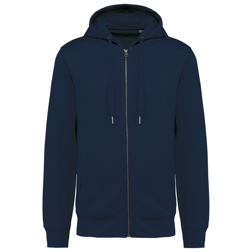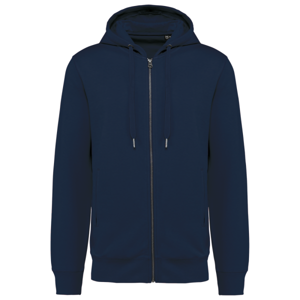 80% biologisch katoen / 20% gerecycleerd polyester post-consumer. Oxford Grey 75% biologisch katoen / 25% gerecycleerd polyester post-consumer. Fleece french terry LST (Low Shrinkage Terry). Stof: enzymgewassen. Rechte snit. 2 omzoomde zakken aan de voorkant. Metalen ritssluiting. Ribboord aan mouwuiteinden, onderkant en de rand van de gevoerde capuchon, met toon-op-toon aanrijgkoordjes met metalen uiteinde. Halvemaanvormige halsopening op de achterkant, voor eenvoudige personalisatie van het merk aan de binnenkant. Nektape in visgraatmotief aan de binnenkant van de kraag. Geen merklabel in de kraag, maar enkel een maatlabel voor eenvoudige personalisatie.