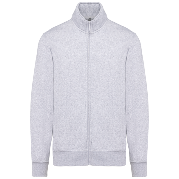 80% katoen / 20% polyester. Buitenoppervlak 100% katoen. LSF-behandeling (Low Shrinkage Fleece: voorgekrompen fleece). Aan de binnenkant geborsteld fleece 3 draden van gekamd katoen. Rechte snit. Rechte mouwen. Opstaande kraag. Ritssluiting in toon op toon plastic. 2 ritszakken en biesjes opzij. Halvemaanvormige afwerking aan de halsopening op de achterkant, voor eenvoudige personalisatie van het merk aan de binnenkant van de kraag. Afwerking van 1x1 ribboord aan de mouwuiteinden en onderaan. Tear-away merklabel.