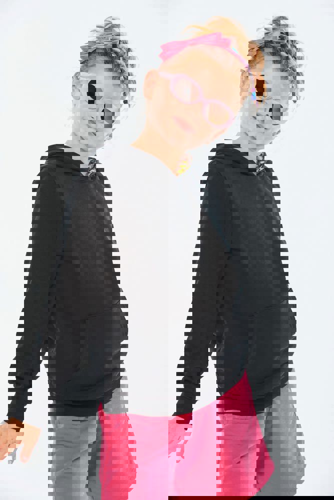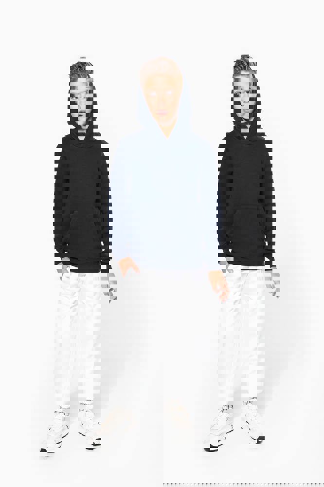 80% katoen / 20% polyester. Gekamd katoen. Aan de binnenkant geborsteld fleece 3 draden. Rechte snit. Rechte mouwen. Kangoeroezakken. Halvemaanvormige halsopening voor eenvoudige personalisatie van het merk aan de binnenkant van de kraag. Afwerkingen van 1x1 ribboord aan de mouwuiteinden en de boord. Gevoerde capuchon met een themastof in bedrukt jerseykatoen. Tear-away merklabel.