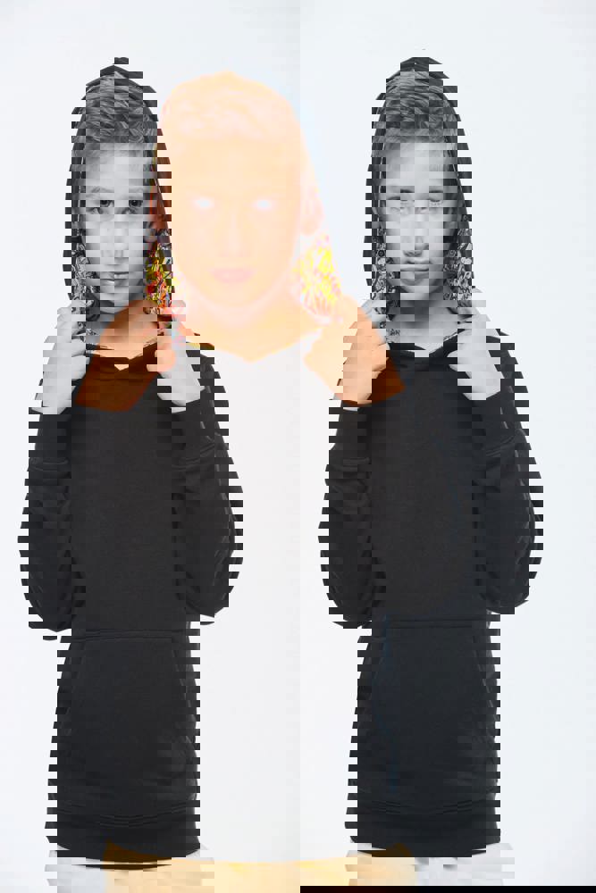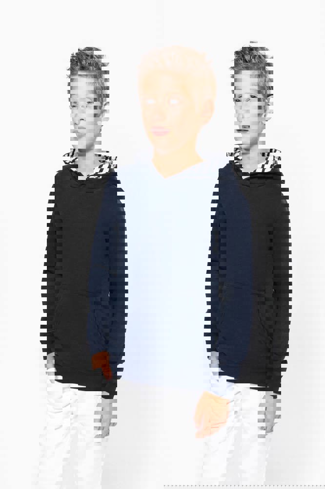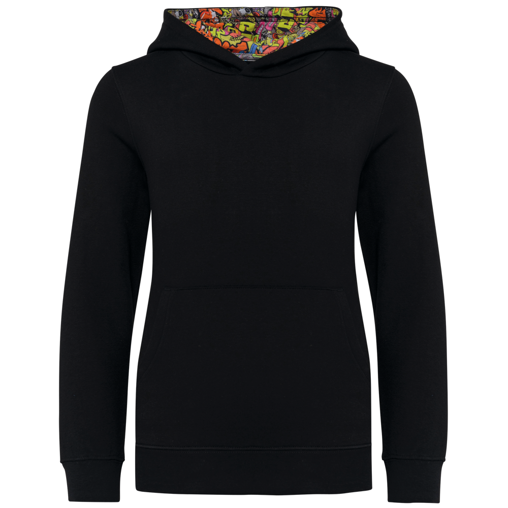 K4014 - Unisex kindersweater met contrasterende capuchon met motief