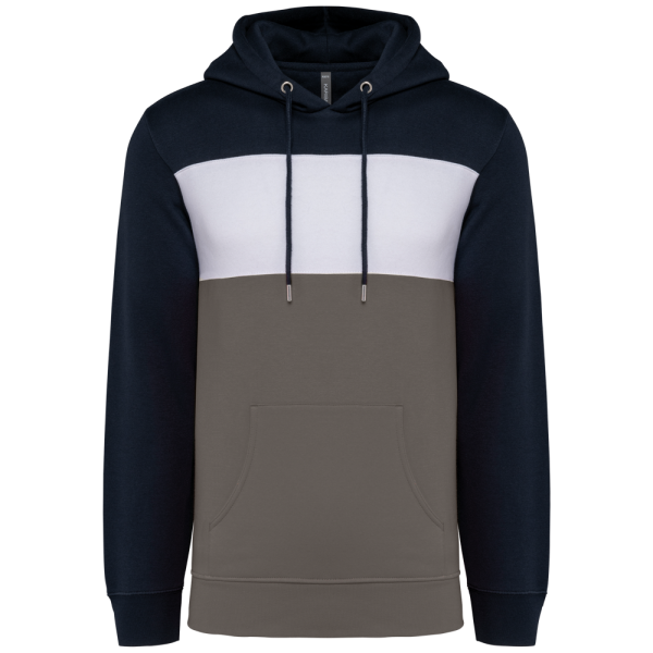 K4016 - Driekleurige unisex sweater met capuchon