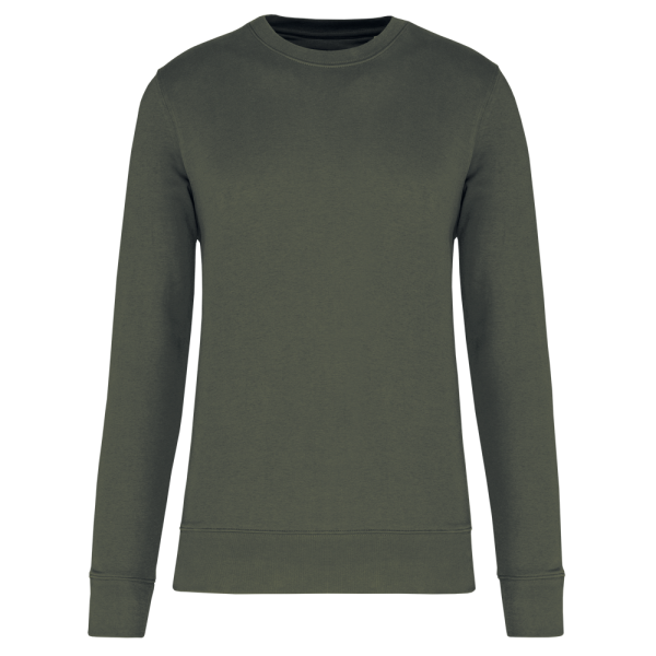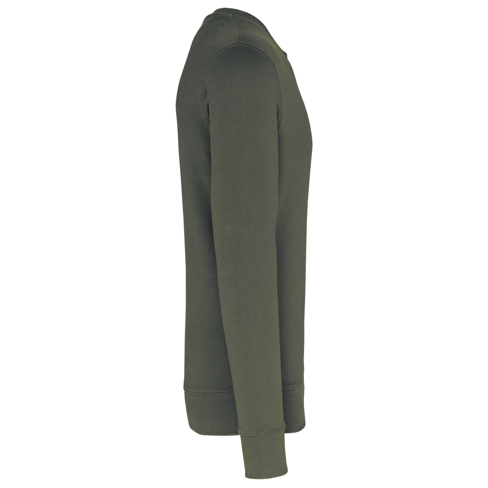 85% katoen / 15% polyester. Gemaakt van 85% biologisch katoen en 15% gerecycled polyester post-consumer. Buitenoppervlak 100% katoen. Geborsteld fleece 3 draden LSF (Low Shrinkage Fleece) aan de binnenkant. Gekamd katoen. Enzymgewassen. Rechte snit. 1x1 ribboord in buisconstructie voor een betere afwerking aan de hals, de mouwuiteinden en de onderkant. Nektape in toon-op-toon jersey en halvemaanvormige afwerking aan de binnenkant van de kraag. Afwerking met dubbel stiksel aan hals, mouwuiteinden en onderkant. Geen merklabel in de kraag, maar enkel een maatlabel voor eenvoudige personalisatie.