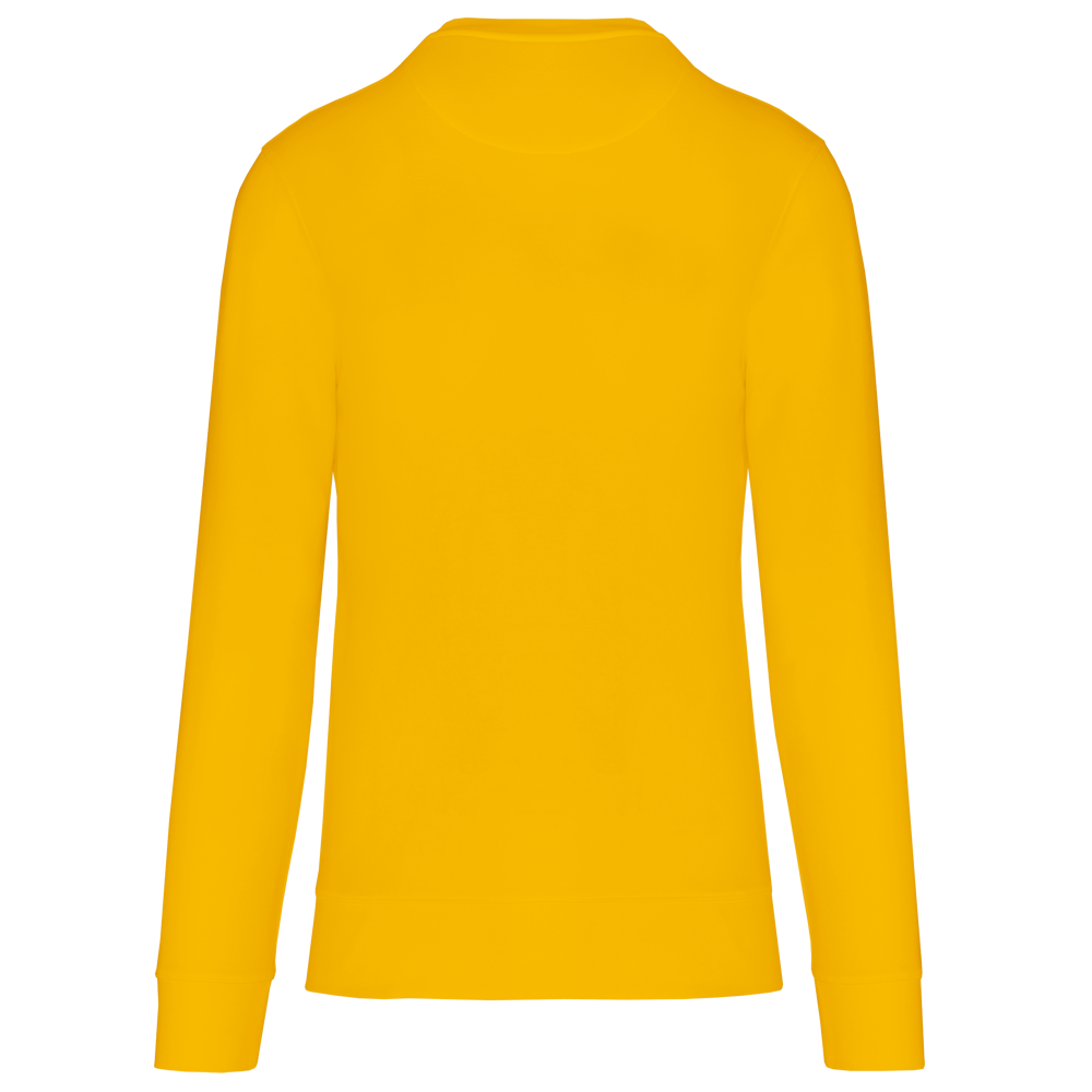 85% katoen / 15% polyester. Gemaakt van 85% biologisch katoen en 15% gerecycled polyester post-consumer. Buitenoppervlak 100% katoen. Geborsteld fleece 3 draden LSF (Low Shrinkage Fleece) aan de binnenkant. Gekamd katoen. Enzymgewassen. Rechte snit. 1x1 ribboord in buisconstructie voor een betere afwerking aan de hals, de mouwuiteinden en de onderkant. Nektape in toon-op-toon jersey en halvemaanvormige afwerking aan de binnenkant van de kraag. Afwerking met dubbel stiksel aan hals, mouwuiteinden en onderkant. Geen merklabel in de kraag, maar enkel een maatlabel voor eenvoudige personalisatie.