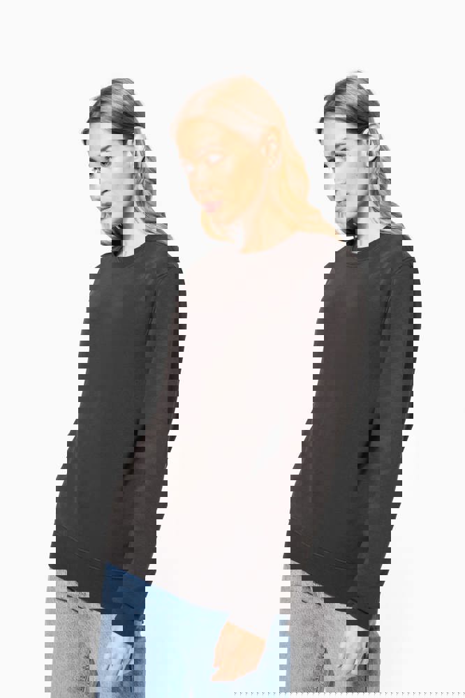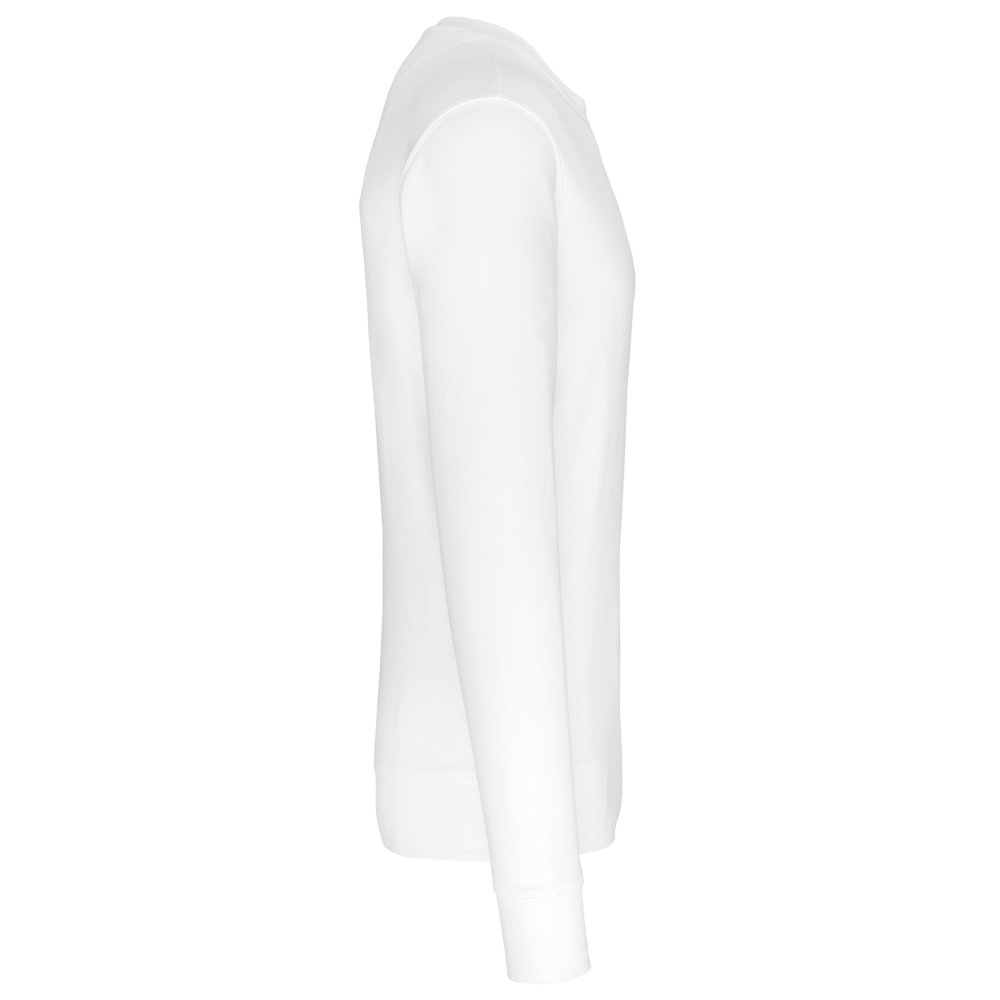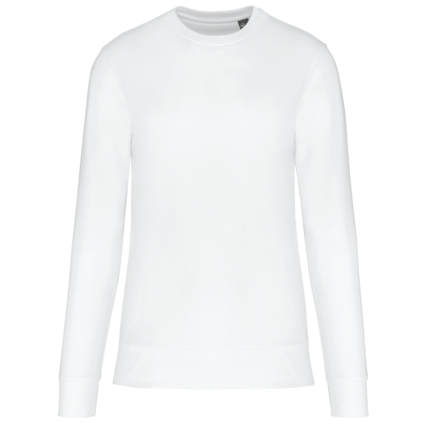 85% katoen / 15% polyester. Gemaakt van 85% biologisch katoen en 15% gerecycled polyester post-consumer. Buitenoppervlak 100% katoen. Geborsteld fleece 3 draden LSF (Low Shrinkage Fleece) aan de binnenkant. Gekamd katoen. Enzymgewassen. Rechte snit. 1x1 ribboord in buisconstructie voor een betere afwerking aan de hals, de mouwuiteinden en de onderkant. Nektape in toon-op-toon jersey en halvemaanvormige afwerking aan de binnenkant van de kraag. Afwerking met dubbel stiksel aan hals, mouwuiteinden en onderkant. Geen merklabel in de kraag, maar enkel een maatlabel voor eenvoudige personalisatie.