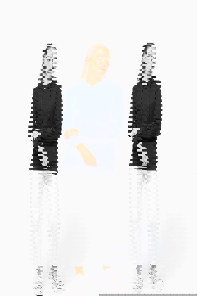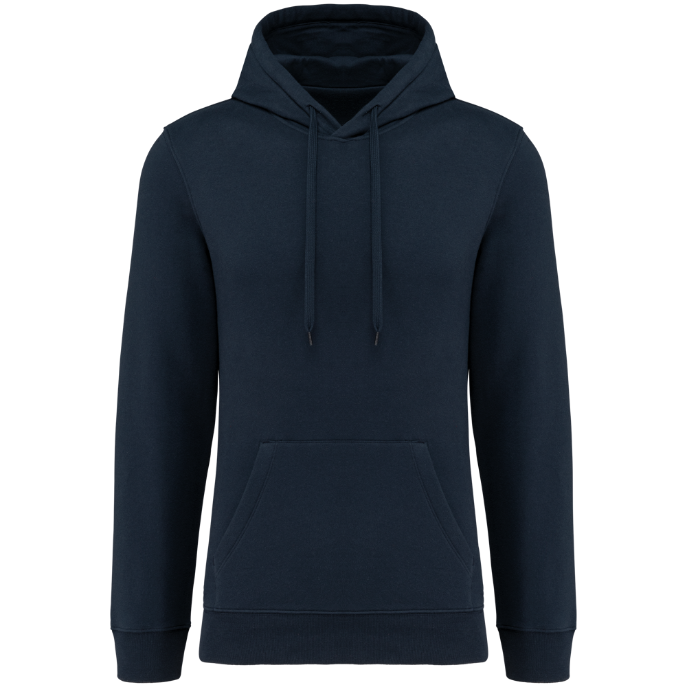 80% katoen / 20% polyester. Geborsteld LSF-fleece 3 draden (Low Shrinkage Fleece), behandeld tegen pluizen. Gemaakt in Portugal. Straight snit. Cut-and-sew-techniek. 1x1 ribboord in buisconstructie voor een betere afwerking aan de mouwuiteinden en de onderkant. Kangoeroezak. Gevoerde capuchon in 100% jerseykatoen met platte aanrijgkoordjes die door knoopsgaten lopen. Halvemaanvormige afwerking aan de binnenkant van de kraag. Dubbel stiksel aan de mouwuiteinden en de onderkant. Geen merklabel, maar een maatlabel in de kraag voor eenvoudige personalisatie.