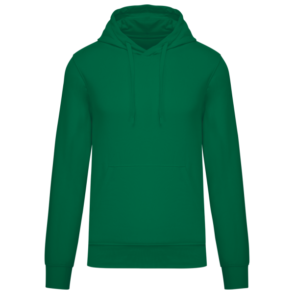 85% katoen / 15% polyester. Gemaakt van 85% biologisch katoen en 15% gerecycled polyester post-consumer. Buitenoppervlak 100% gekamd katoen. Geborstelde fleece 3 draden LSF (Low Shrinkage Fleece) aan de binnenkant. Enzymgewassen. Rechte snit. 1x1 ribboord in buisconstructie voor een betere afwerking aan de mouwuiteinden en de onderkant. Kangoeroezak. Gevoerde capuchon 100% katoen, jerseykatoen 180 g. Nektape in toon op toon jersey en halvemaanvormige afwerking aan de binnenkant van de kraag. Afwerking dubbel stiksel aan de mouwuiteinden, onderkant en hals. Geen merklabel in de kraag, maar enkel een maatlabel voor eenvoudige personalisatie.