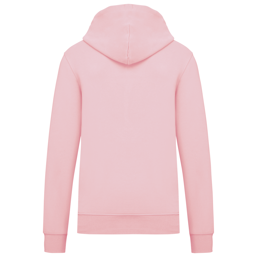 85% katoen / 15% polyester. Gemaakt van 85% biologisch katoen en 15% gerecycled polyester post-consumer. Buitenoppervlak 100% gekamd katoen. Geborstelde fleece 3 draden LSF (Low Shrinkage Fleece) aan de binnenkant. Enzymgewassen. Rechte snit. 1x1 ribboord in buisconstructie voor een betere afwerking aan de mouwuiteinden en de onderkant. Kangoeroezak. Gevoerde capuchon 100% katoen, jerseykatoen 180 g. Nektape in toon op toon jersey en halvemaanvormige afwerking aan de binnenkant van de kraag. Afwerking dubbel stiksel aan de mouwuiteinden, onderkant en hals. Geen merklabel in de kraag, maar enkel een maatlabel voor eenvoudige personalisatie.