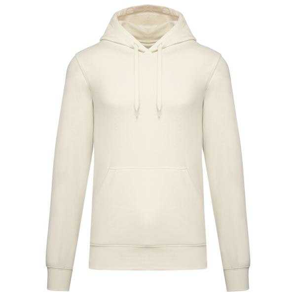 85% katoen / 15% polyester. Gemaakt van 85% biologisch katoen en 15% gerecycled polyester post-consumer. Buitenoppervlak 100% gekamd katoen. Geborstelde fleece 3 draden LSF (Low Shrinkage Fleece) aan de binnenkant. Enzymgewassen. Rechte snit. 1x1 ribboord in buisconstructie voor een betere afwerking aan de mouwuiteinden en de onderkant. Kangoeroezak. Gevoerde capuchon 100% katoen, jerseykatoen 180 g. Nektape in toon op toon jersey en halvemaanvormige afwerking aan de binnenkant van de kraag. Afwerking dubbel stiksel aan de mouwuiteinden, onderkant en hals. Geen merklabel in de kraag, maar enkel een maatlabel voor eenvoudige personalisatie.
