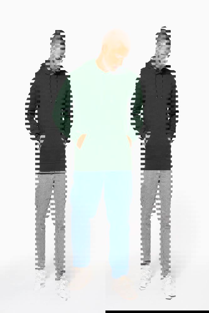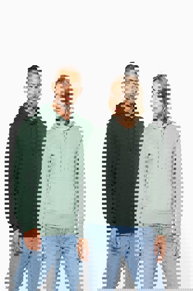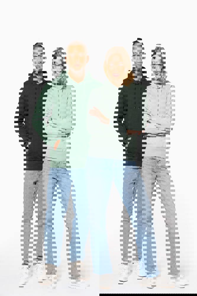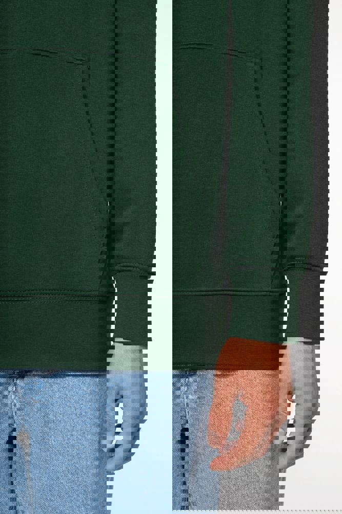 85% katoen / 15% polyester. Gemaakt van 85% biologisch katoen en 15% gerecycled polyester post-consumer. Buitenoppervlak 100% gekamd katoen. Geborstelde fleece 3 draden LSF (Low Shrinkage Fleece) aan de binnenkant. Enzymgewassen. Rechte snit. 1x1 ribboord in buisconstructie voor een betere afwerking aan de mouwuiteinden en de onderkant. Kangoeroezak. Gevoerde capuchon 100% katoen, jerseykatoen 180 g. Nektape in toon op toon jersey en halvemaanvormige afwerking aan de binnenkant van de kraag. Afwerking dubbel stiksel aan de mouwuiteinden, onderkant en hals. Geen merklabel in de kraag, maar enkel een maatlabel voor eenvoudige personalisatie.