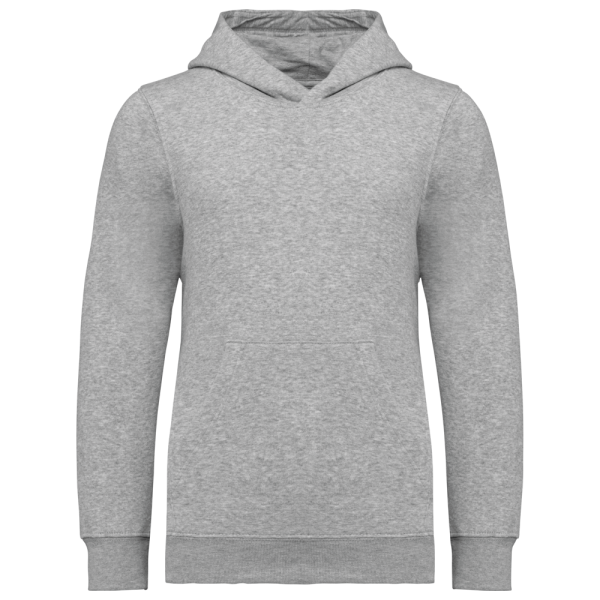 80% katoen / 20% polyester. Gekamd katoen. 3-laags LSF (Low Shrinkage Fleece) geborsteld fleece met behandeling tegen pluizen. Gemaakt in Portugal. Rechte snit. 1x1 ribboord aan de mouwuiteinden en de boord onderaan. Capuchon gevoerd met jerseykatoen. Dubbel stiksel op schouders, armsgaten, mouwuiteinden en boord. Nektape in bijpassende jersey in de kraag. Kangoeroezak. Halvemaanvormig inzetsel achteraan. Naamlabel in de kleding. Geen merklabel in de halsopening, enkel een maatlabel voor eenvoudige personalisatie.