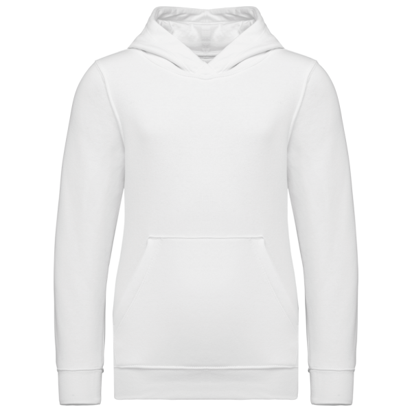 80% katoen / 20% polyester. Gekamd katoen. 3-laags LSF (Low Shrinkage Fleece) geborsteld fleece met behandeling tegen pluizen. Gemaakt in Portugal. Rechte snit. 1x1 ribboord aan de mouwuiteinden en de boord onderaan. Capuchon gevoerd met jerseykatoen. Dubbel stiksel op schouders, armsgaten, mouwuiteinden en boord. Nektape in bijpassende jersey in de kraag. Kangoeroezak. Halvemaanvormig inzetsel achteraan. Naamlabel in de kleding. Geen merklabel in de halsopening, enkel een maatlabel voor eenvoudige personalisatie.