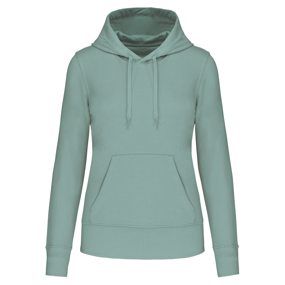 85% katoen / 15% polyester. Gemaakt van 85% biologisch katoen en 15% gerecycled polyester post-consumer. Buitenoppervlak 100% katoen. Geborsteld fleece 3 draden LSF (Low Shrinkage Fleece) aan de binnenkant. Enzymgewassen. Gekamd katoen. Rechte snit. 1x1 ribboord in buisconstructie voor een betere afwerking aan de mouwuiteinden en de onderkant. Kangoeroezak. Gevoerde capuchon 100% katoen, jerseykatoen 180 g. Nektape in toon-op-toon jersey en halvemaanvormige afwerking aan de binnenkant van de kraag. Afwerking met dubbel stiksel aan de mouwuiteinden, de onderkant en de hals. Geen merklabel in de kraag, maar enkel een maatlabel voor eenvoudige personalisatie.