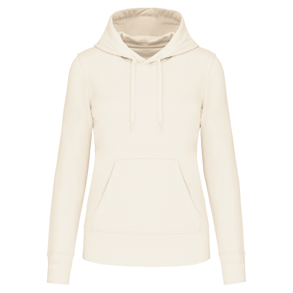 85% katoen / 15% polyester. Gemaakt van 85% biologisch katoen en 15% gerecycled polyester post-consumer. Buitenoppervlak 100% katoen. Geborsteld fleece 3 draden LSF (Low Shrinkage Fleece) aan de binnenkant. Enzymgewassen. Gekamd katoen. Rechte snit. 1x1 ribboord in buisconstructie voor een betere afwerking aan de mouwuiteinden en de onderkant. Kangoeroezak. Gevoerde capuchon 100% katoen, jerseykatoen 180 g. Nektape in toon-op-toon jersey en halvemaanvormige afwerking aan de binnenkant van de kraag. Afwerking met dubbel stiksel aan de mouwuiteinden, de onderkant en de hals. Geen merklabel in de kraag, maar enkel een maatlabel voor eenvoudige personalisatie.