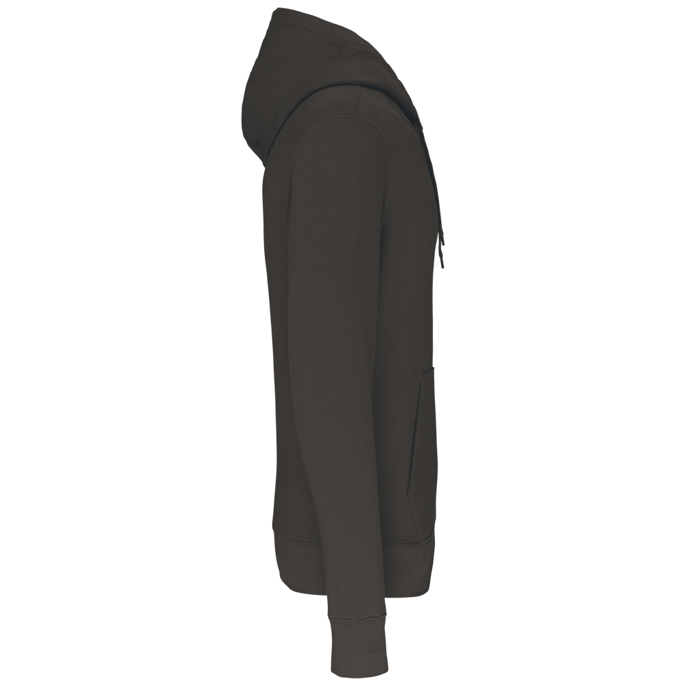 85% katoen / 15% polyester. Gemaakt van 85% biologisch katoen en 15% gerecycled polyester post-consumer. Buitenoppervlak 100% katoen. Geborsteld fleece 3 draden LSF (Low Shrinkage Fleece) aan de binnenkant. Gekamd katoen. Enzymgewassen. Rechte snit. 1x1 ribboord in buisconstructie voor een betere afwerking aan de mouwuiteinden en de onderkant. Kangoeroezak. Gevoerde capuchon 100% katoen, jerseykatoen 180 g. Nektape in toon-op-toon jersey en halvemaanvormige afwerking aan de binnenkant van de kraag. Afwerking met dubbel stiksel aan mouwuiteinden en onderkant. Geen merklabel in de kraag, maar enkel een maatlabel voor eenvoudige personalisatie.